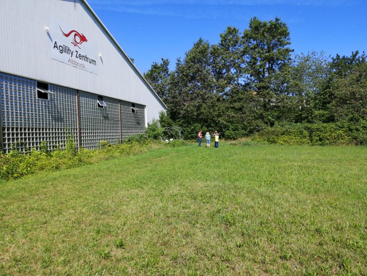 - Bodenbelag: hochwertiger, gelenkschonender Hundesportrasen (nur mit sauberen/Hallenschuhen zu betreten)